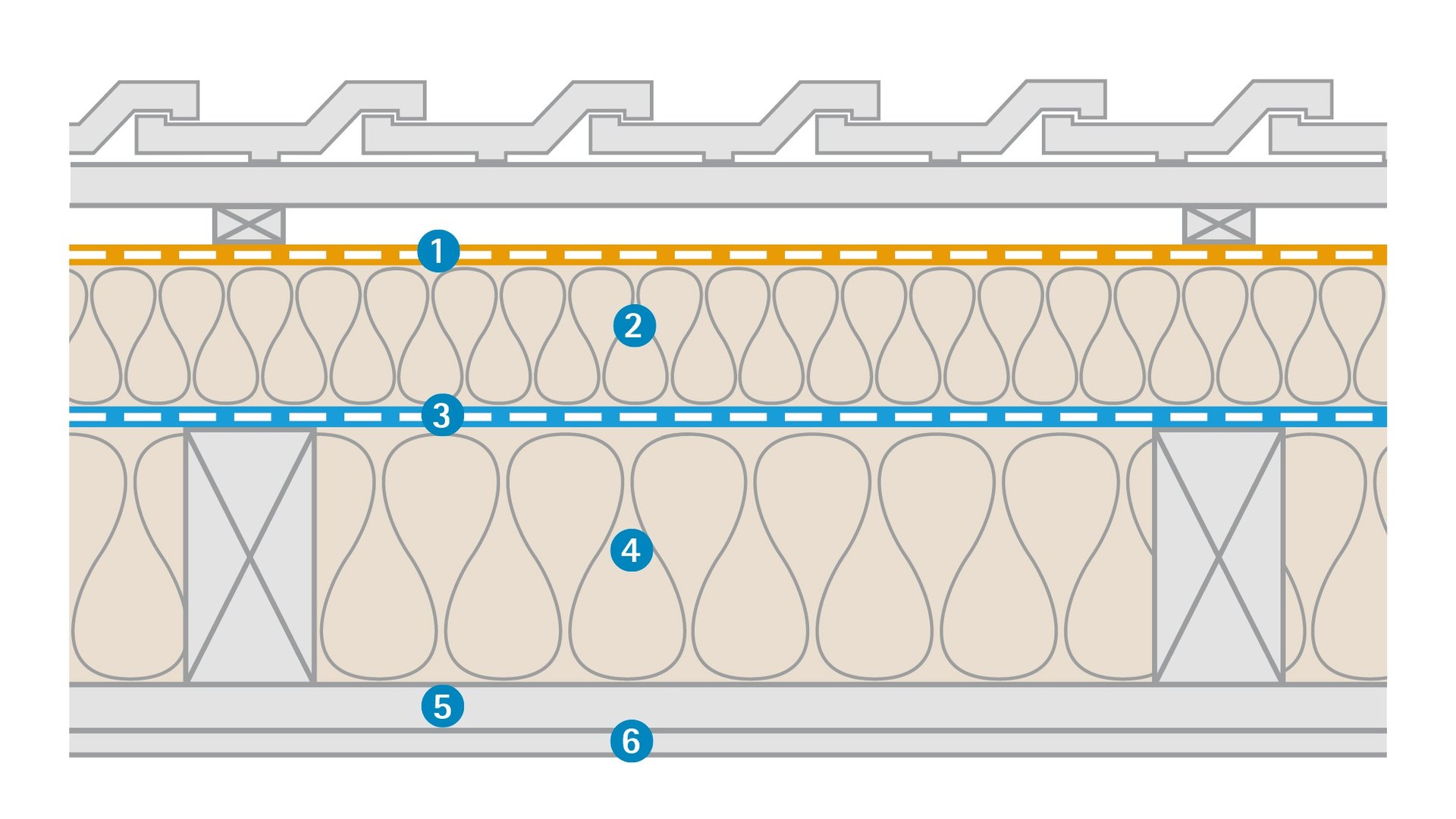 DASAPLANO wordt aangebracht boven de spanten onder een aanvullende extra isolatie op de spanten bestaande uit houtvezelplaten voor: