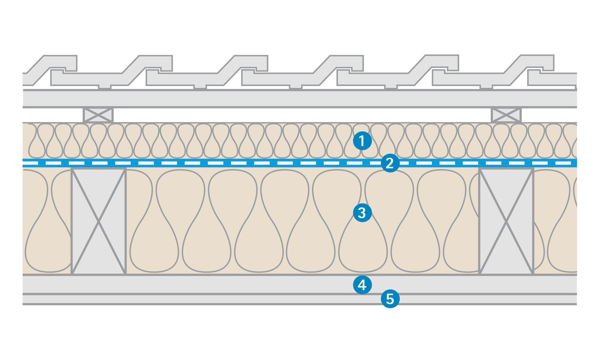 - Isolatie op de spanten bij onderdakplaten van houtvezel