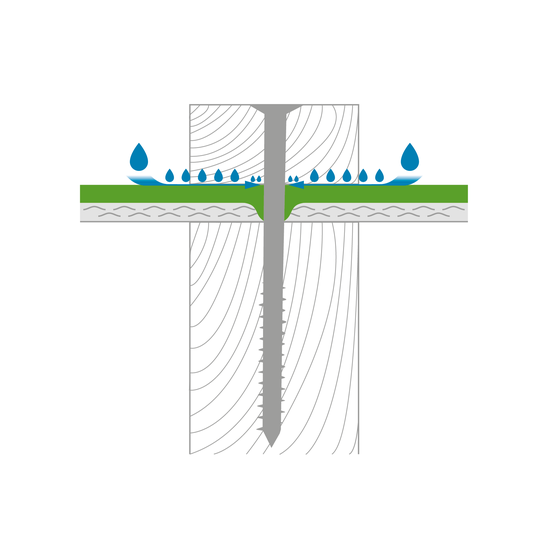 - Effectieve verwerking: bij ≥ 14° dakhelling als dakfolie met geïntegreerde watervaste tape zonder extra nageldichtingsmateriaal (ETA-23/0532)