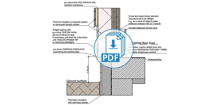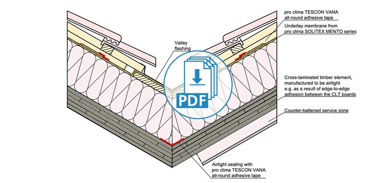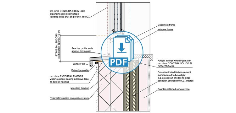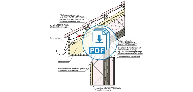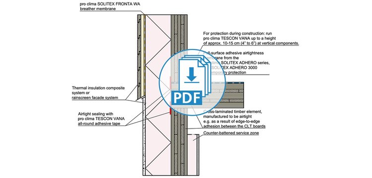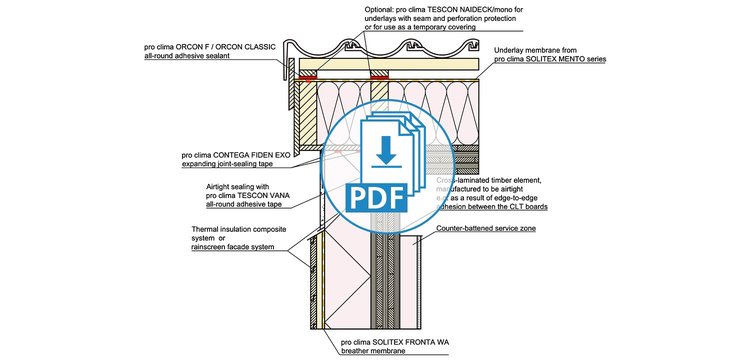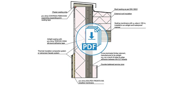 Deze tekeningen zijn vertaald van het Duits naar het Engels, maar baseren nog steeds op onze productaanbevelingen voor de Duitse markt. Sommige producten zijn niet op alle markten verkrijgbaar. Neem contact op met onze buitendienst in Nederland of uw lokale distributeur voor alternatieve producten. Lees bij het gebruik van de constructiedetails de gebruiksvoorwaarden van de pro clima database met CAD-tekeningen van detailoplossingen. Door een bestand te downloaden, stemt u in met deze voorwaarden.
